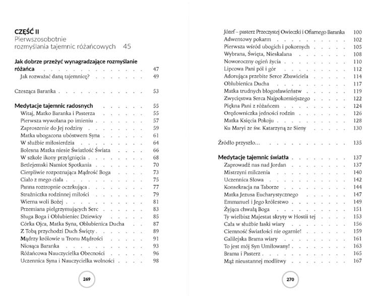 Publikowane w latach 2012–2020 w miesięczniku „Różaniec” rozmyślania na pierwsze soboty miesiąca, zebrane w jedną całość, charakteryzują się prostotą, głębią i pobożnością. Medytacje, ujęte w formie dialogu z Maryją, zaskakują świeżością i niespotykanym łączeniem wątków. Rozważania poprzedzone są wprowadzeniem w nabożeństwo pierwszych sobót miesiąca, o które apelowała Matka Boża w Fatimie. Mogą z nich skorzystać także ci, którzy chcą owocniej odmawiać różaniec, a nawet ci, którzy tego nie robią, lecz chcieliby nauczyć się modlitwy Słowem Bożym.