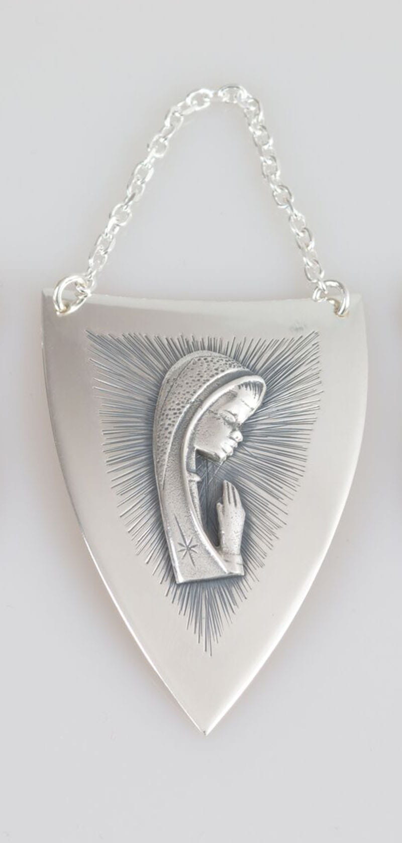 Ciekawie wykonany ryngraf ze srebra najwyższej jakości - próba 925. Precyzyjnie odwzorowany wizerunek modlącej się Maryi. Dodatkowe żłobienia nadają unikatowy charakter dla całości wykonania.