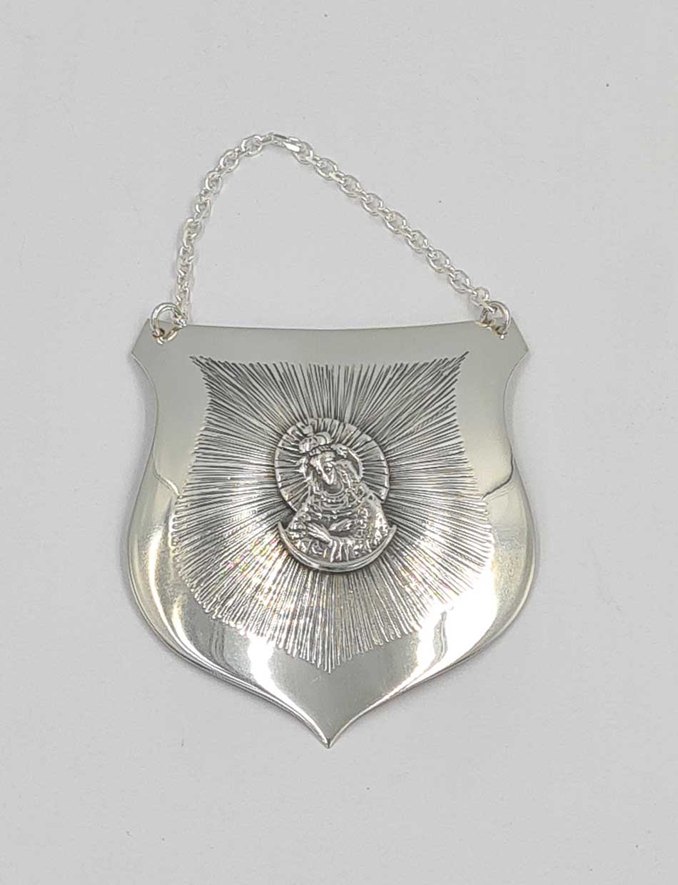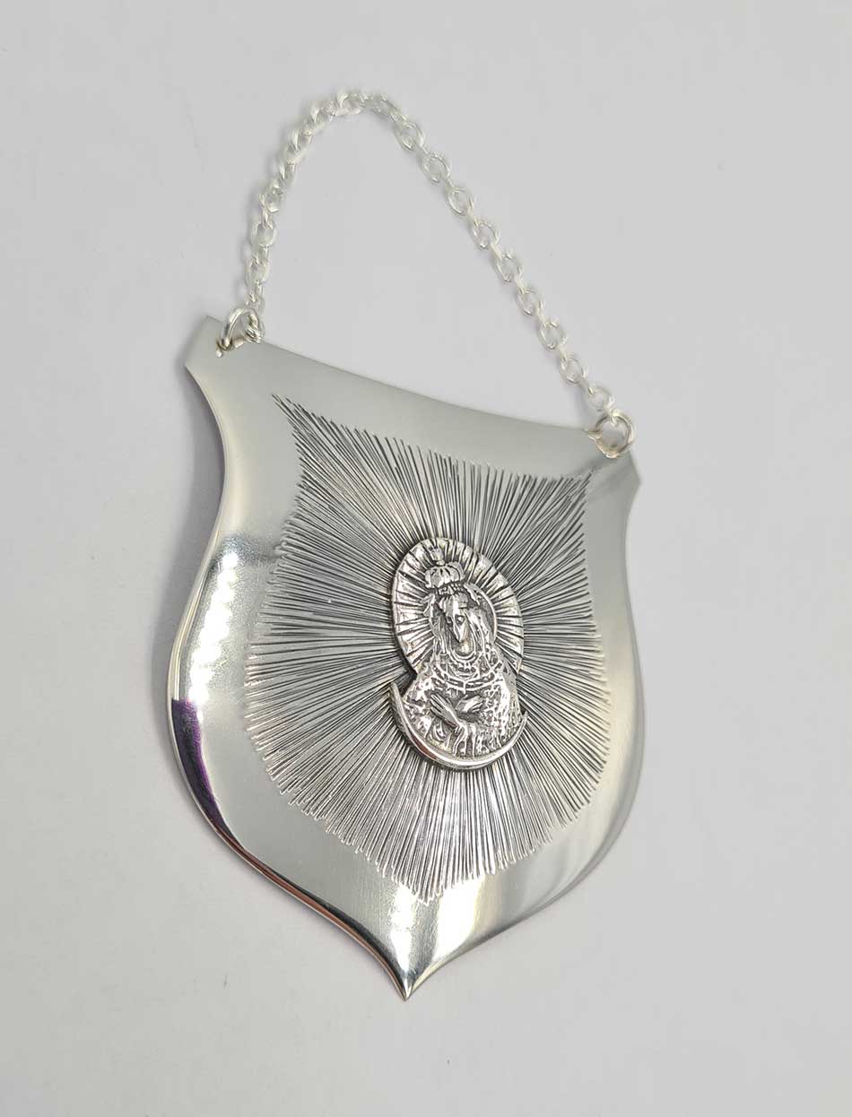 Medalion w całości wykonany ze srebra próba 925; precyzyjnie odzwierciedlony wizerunek Matki Boskiej.