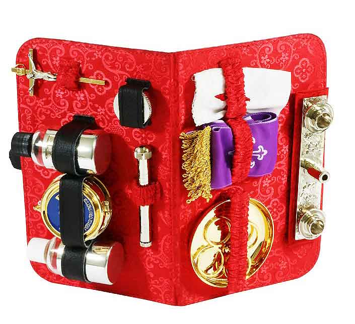 Wysokiej jakości produkt włoski. Saszetka z materiału wodoodpornego z wyposażeniem liturgicznym.