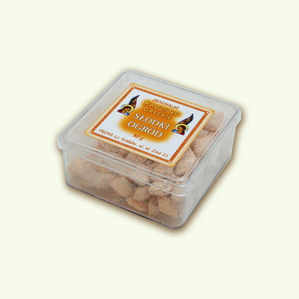 Doskonałej jakości kadzidło grecki, w poręcznym opakowaniu z możliwością ponownego zamknięcia. Idealne do użytku domowego. Kadzidełko umieszczamy na rozgrzanym węgielku (zazwyczaj dwie sztuki). Długo uwalnia świeży i słodki zapach.