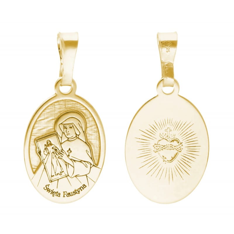 Srebrny Medalik Pozłacany Ag 925 – Święta Faustyna