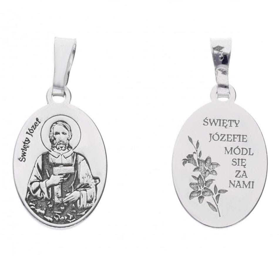 Medalik srebrny rodowany - Święty Józef