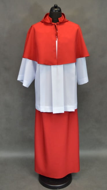 Dwuczęściowy strój ministrancki w kolorze czerwonym FP-810-C składa się z: