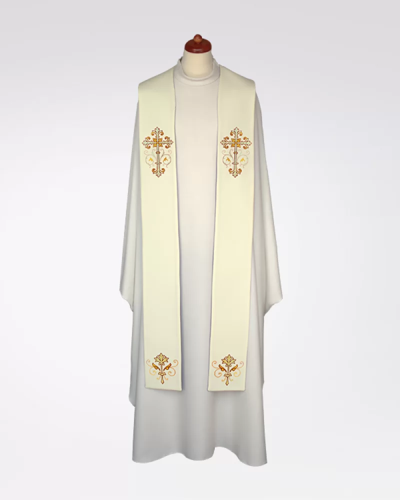 Stuła wykonana z dużą starannością i dbałością o szczegóły, z przewiewnej tkaniny.