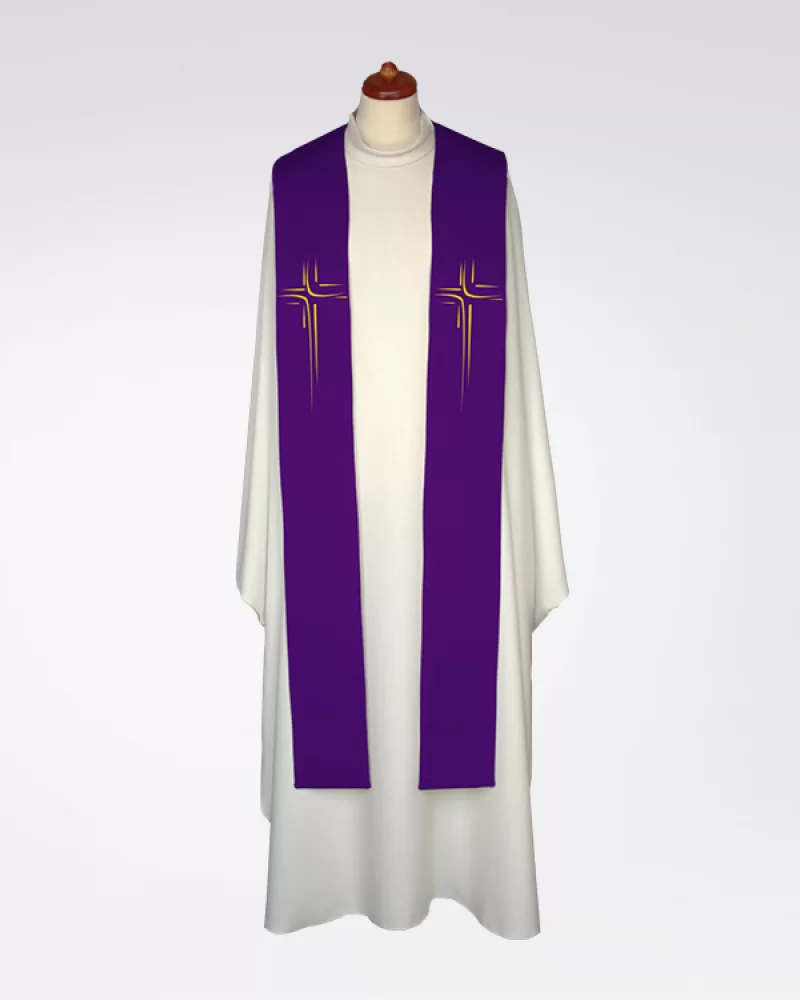 Stuła kapłańska fioletowa z delikatnym krzyżem 4-344-4