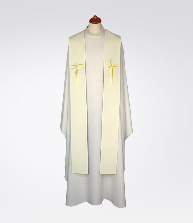 Stuła kapłańska ecru z delikatnym krzyżem 4-344-1