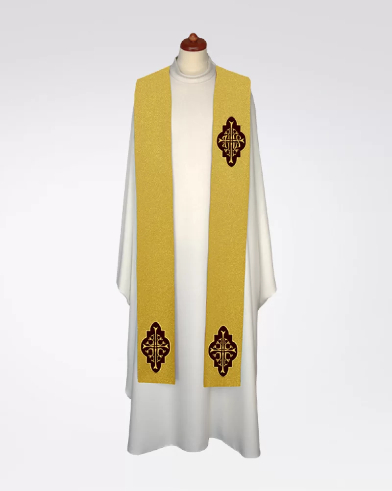 Stuła w kolorze starego złota z haftem IHS na aksamitnych aplikacjach 4-387-6
