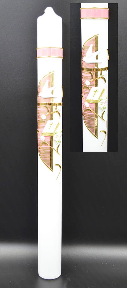 Świeca chrzcielna różowa ze złotym zdobieniem C13RZ.