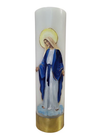 Świeca Liturgiczna na Wkład Olejowy z Wizerunkiem Matki Bożej Niepokalanej
