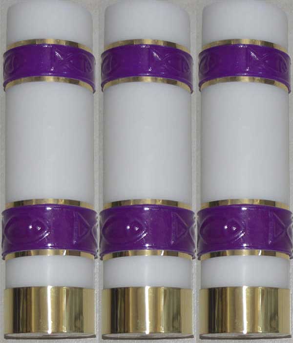 Zestaw świec liturgicznych z fioletowym zdobieniem - świece adwentowe