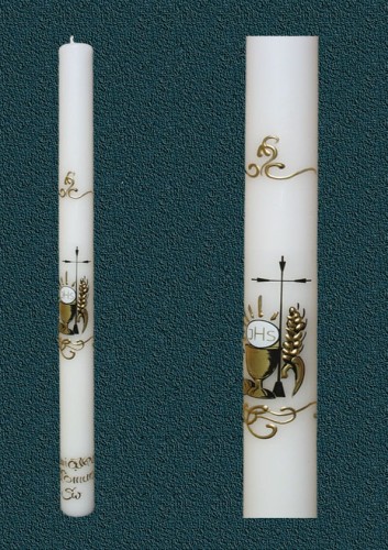 Świeca pierwszokomunijna z naklejką i ręcznie zdobiona