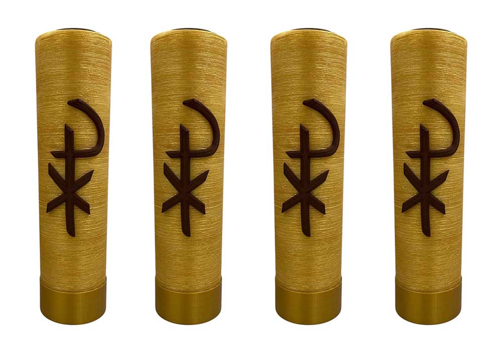 Świeca parafinowa złota z aplikacją eucharystyczną.