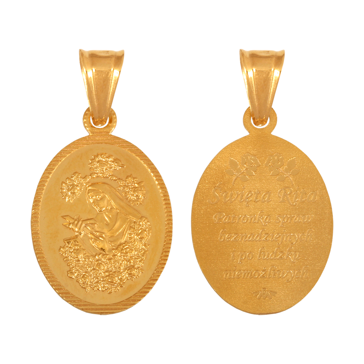 Złoty medalik dwustronny z wizerunkiem Św. Rity