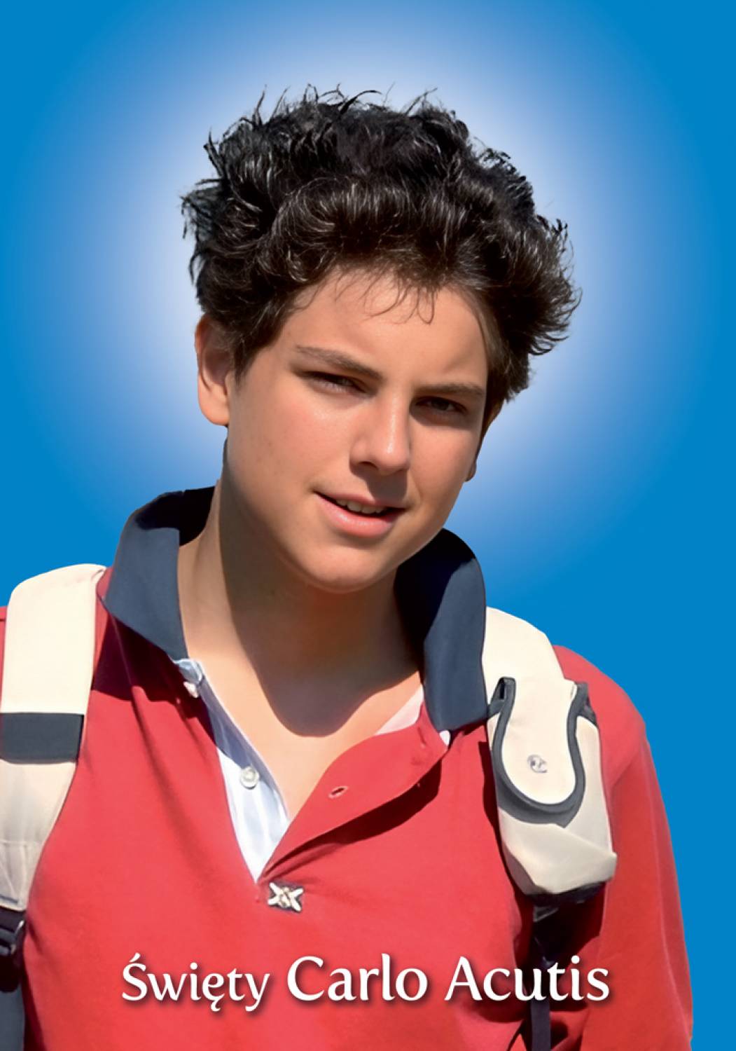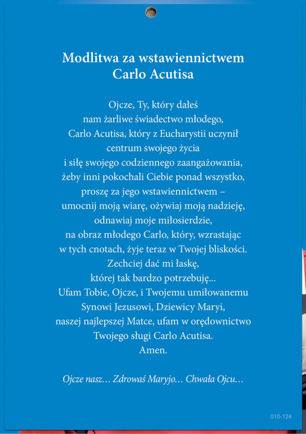 Święty Carlo Acutis - obraz na tekturze z modlitwą A5