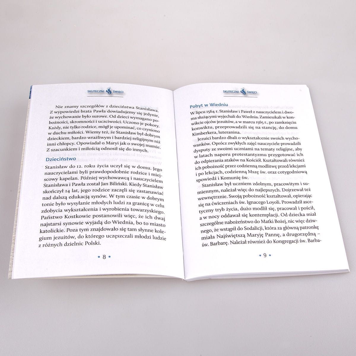 Święty Stanisław Kostka urodził się w Rostkowie k. Przasnysza w drugiej połowie 1550 r. w średniozamożnej rodzinie szlacheckiej. Kiedy skończył 14 lat, państwo Kostkowie postanowili, że ich dwaj najstarsi synowie, Stanisław i Paweł, wyjadą w celu dalszej nauki do Wiednia. Znajdowało się tam słynne kolegium jezuitów, do którego uczęszczali młodzi ludzie z różnych dzielnic Polski.W grudniu 1565 r. Stanisław ciężko zachorował i był pewien, że niebawem umrze. Cierpiał nie tyle z powodu choroby, co z niemożności przyjęcia Komunii św. Wówczas św. Barbara, patronka dobrej śmierci, do której się zwrócił, w towarzystwie dwóch aniołów nawiedziła jego pokój i przyniosła mu Wiatyk. W tej samej chorobie objawiła mu się Najświętsza Maryja Panna z Dzieciątkiem, które złożyła mu na ręce. Od Niej też doznał cudu uzdrowienia i usłyszał polecenie, aby wstąpił do Towarzystwa Jezusowego. Nie było to jednak łatwe. Mimo że Stanisław czuł, że to jego powołanie, decyzji tej stanowczo przeciwstawiał się jego ojciec. Po licznych perypetiach Stanisław dopiął swego. Śluby zakonne złożył w pierwszych miesiącach 1568 r. W Towarzystwie Jezusowym był zwyczaj, że na początku każdego miesiąca członkowie wspólnoty losowali świętego, którego cnoty naśladowali i do którego się zwracali w swoich potrzebach. Stanisław wylosował św. Wawrzyńca. 9 sierpnia skorzystał z sakramentu pokuty, a następnego dnia, w uroczystość tego świętego, przyjął Komunię św. i poprosił go o wstawiennictwo u Boga, aby mógł umrzeć w święto Wniebowzięcia. Wieczorem poczuł się bardzo źle. 13 sierpnia jego stan się pogorszył. Odszedł do Pana w nocy 15 sierpnia 1568 r.Święty to przyjaciel ludzi młodych, patronuje Katolickiemu Stowarzyszeniu Młodzieży, nieustraszony w przeciwnościach opiekun wielkich pragnień, potężny obrońca i opiekun Polski.W książeczce znajdziemy historię życia św. Stanisława Kostki, poznamy, jak rozwijał się jego kult, a także legendy z nim związane. Dowiemy się, jak jest przedstawiany i jakie są jego atrybuty. Poznamy cuda, które dokonały się za jego wstawiennictwem, zwyczaje z nim związane i modlitwy za jego przyczyną.Wszystkie książki z serii posiadają nihil obstat władz duchownych.