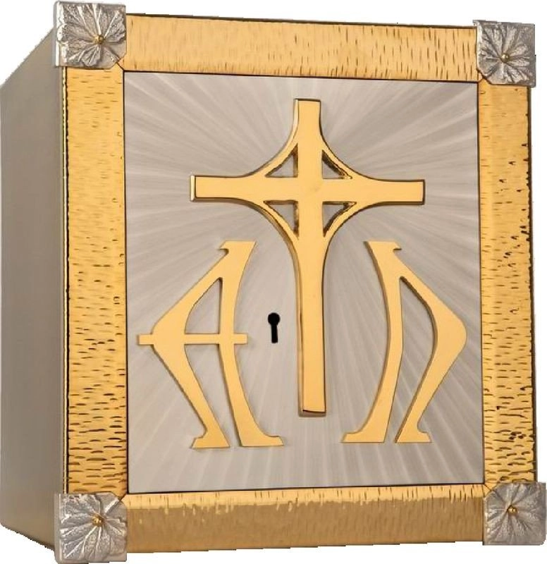 Wysokiej jakości produkt polski, tabernakulum mosiężne z okuciami, zdobione.
