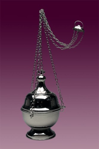 Trybularz mosiężny niklowany, łańcuchy ręcznie zaplatane.