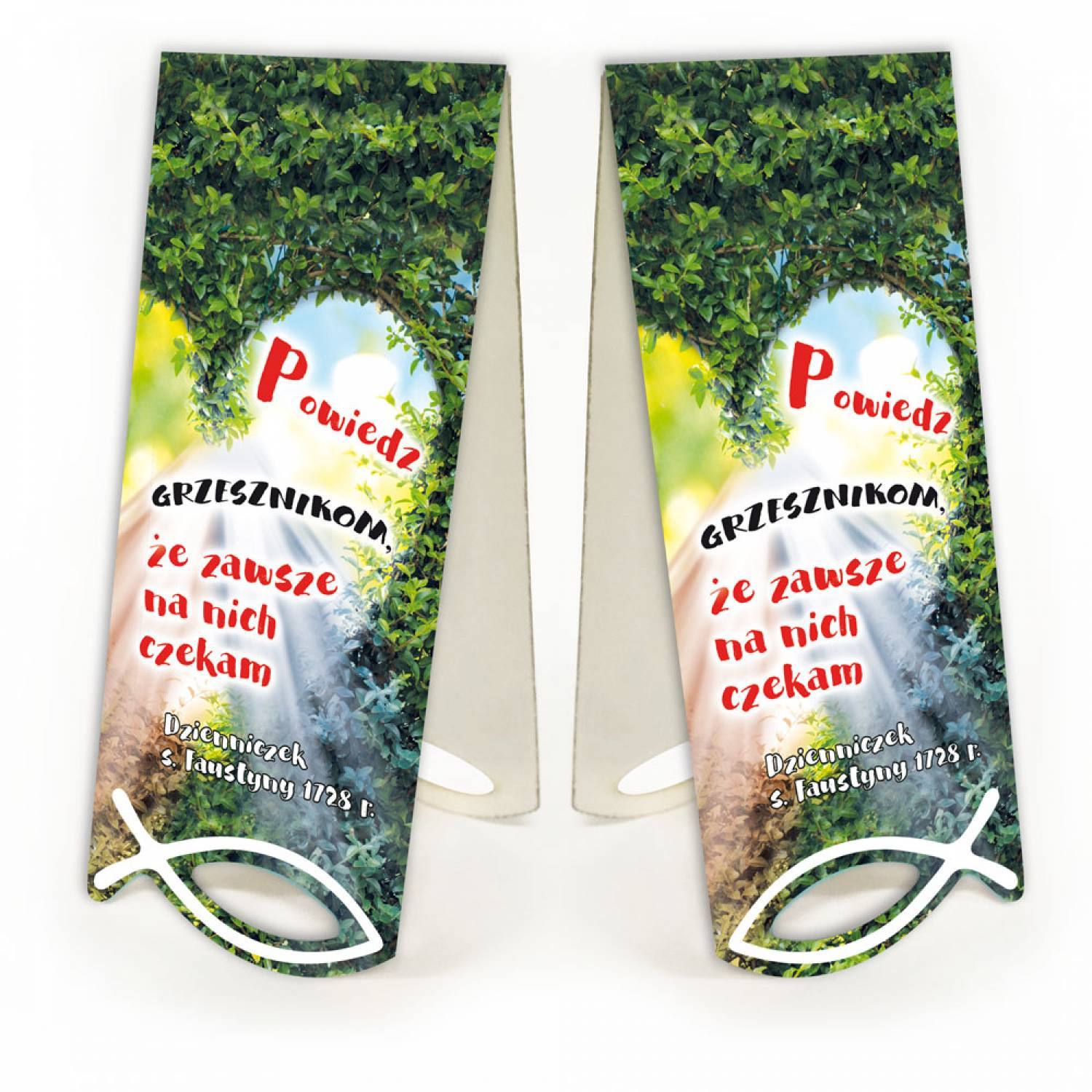 jak i na dole strony książki. Zakładka jest dwustronnie nadrukowana. Dolna część zakładki opatrzona symbolem rybki.