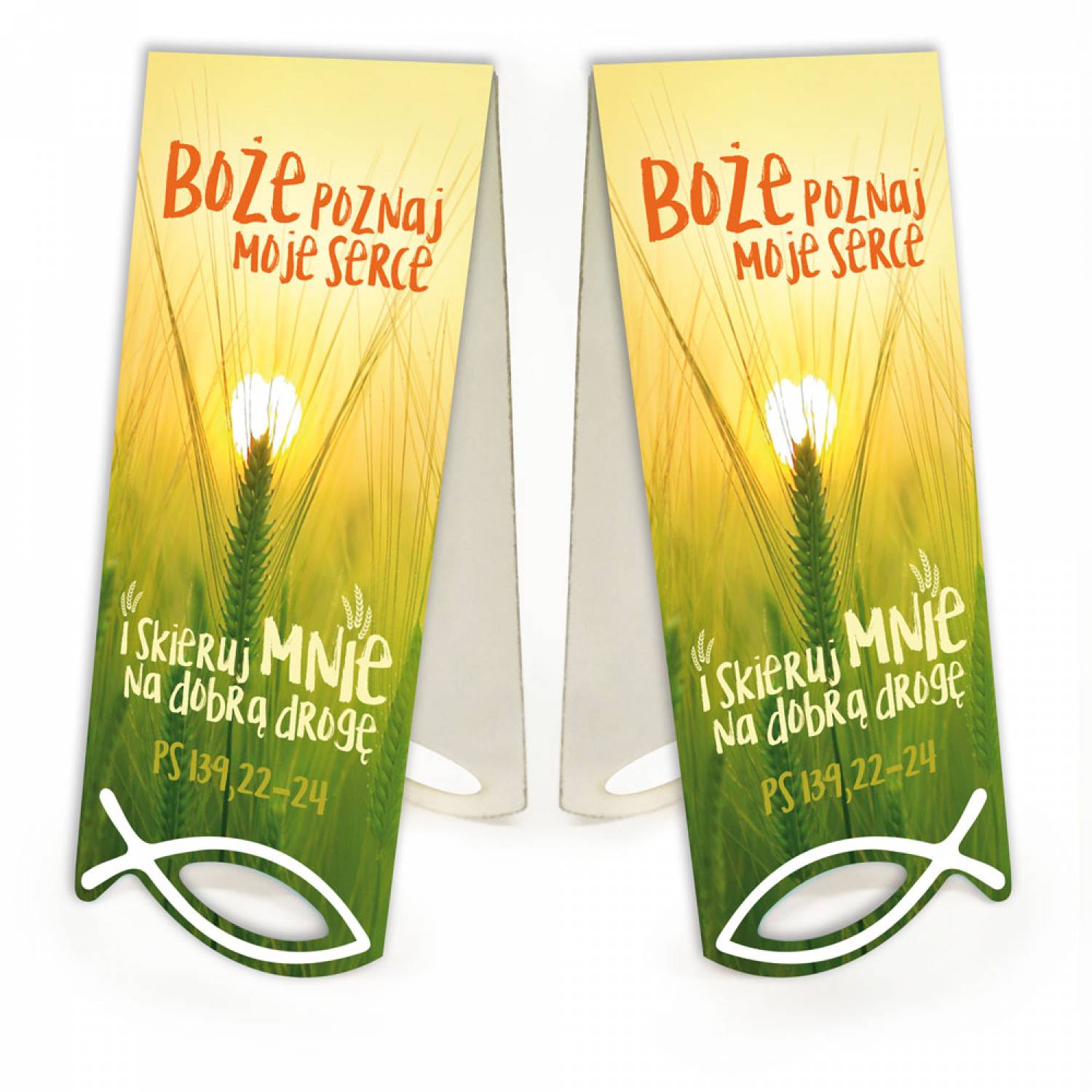 jak i na dole strony książki. Zakładka jest dwustronnie nadrukowana. Dolna część zakładki opatrzona symbolem rybki.