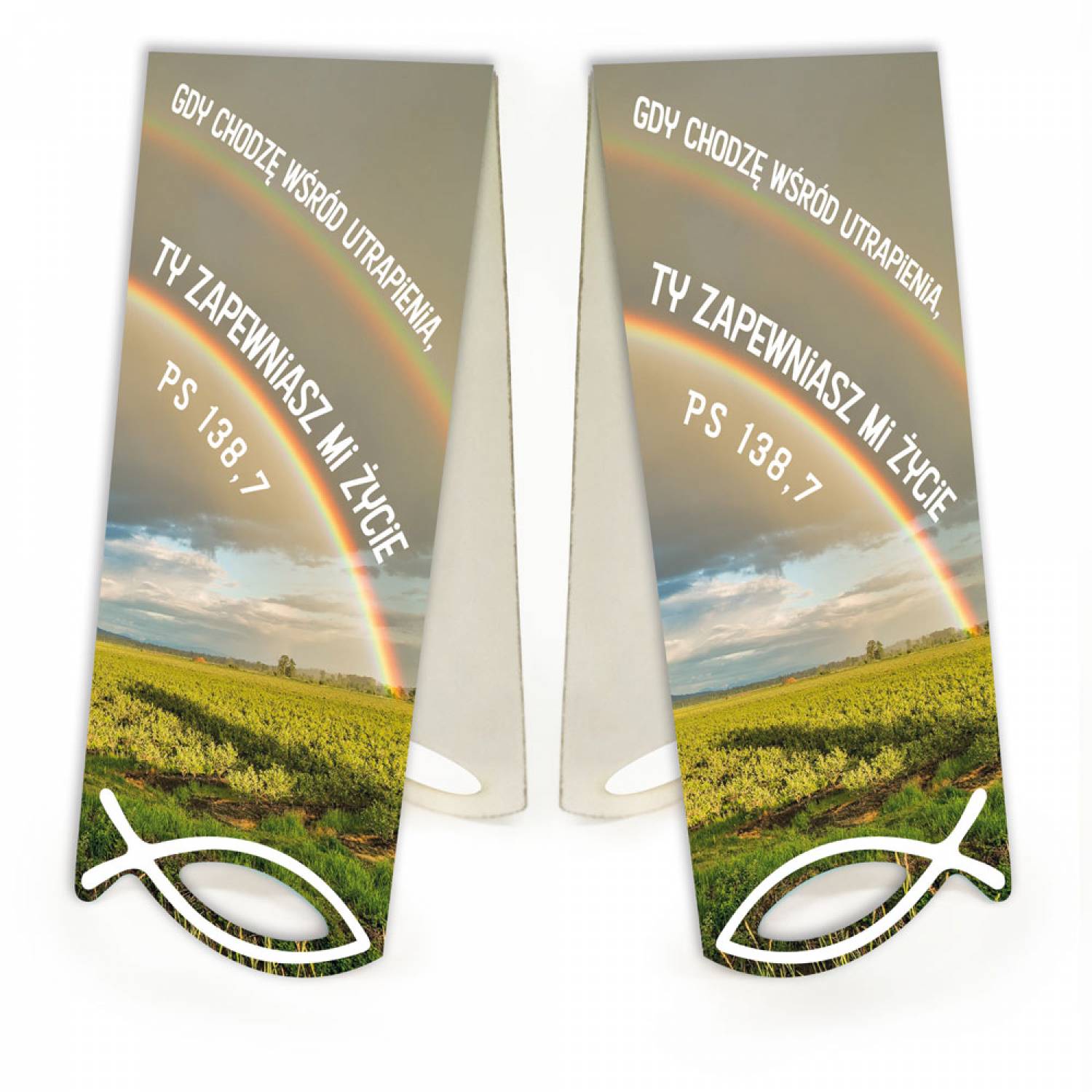 jak i na dole strony książki. Zakładka jest dwustronnie nadrukowana. Dolna część zakładki opatrzona symbolem rybki.
