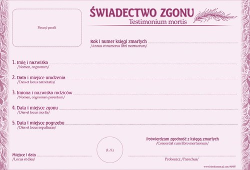 Zaświadczenie - Świadectwo Zgonu (paczka 50 szt.)