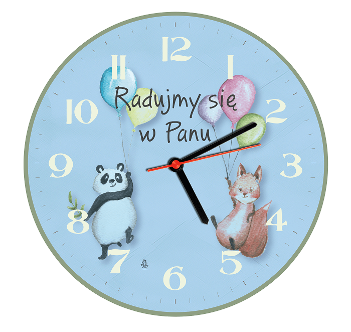 Lekki, trwały i estetyczny – zegar „Radujmy się w Panu – Balony” to nie tylko praktyczny element wyposażenia, ale również piękne świadectwo wiary w codziennym otoczeniu.