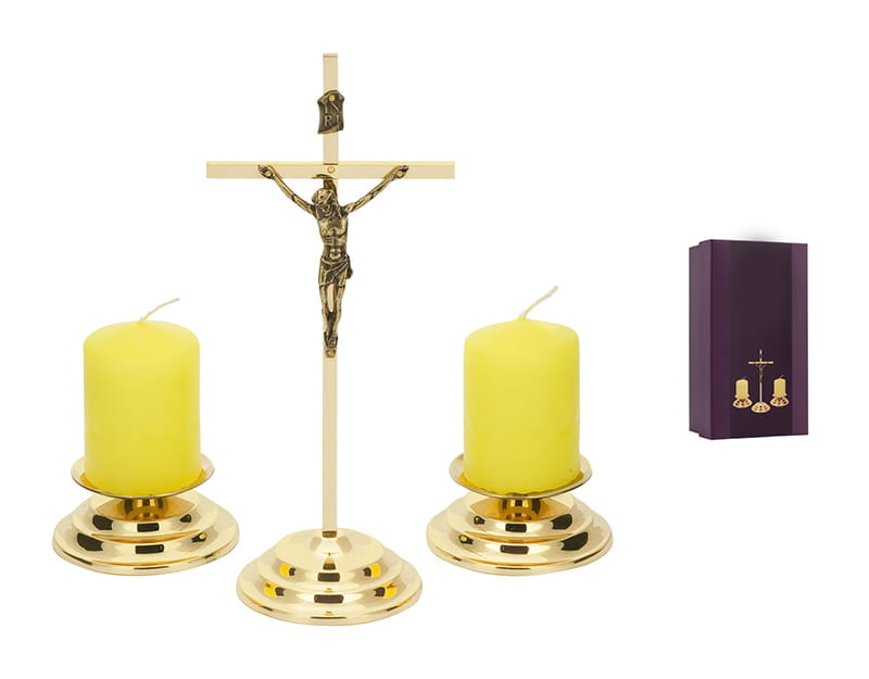 Mosiężny zestaw kolędowy w kolorze złotym.