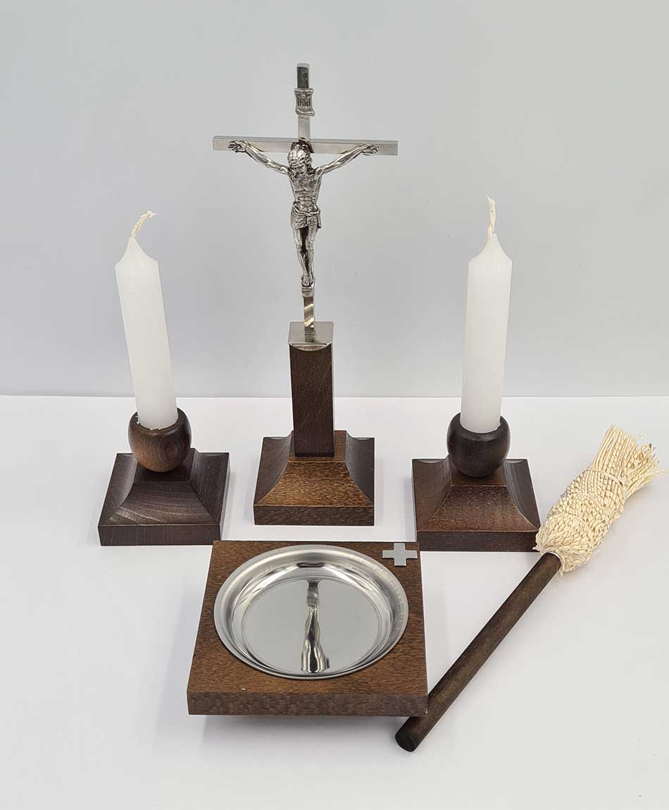 Podstawka drewniana z misą metalową na wodę święconą - wymiary 9,5 x 9,5 cm