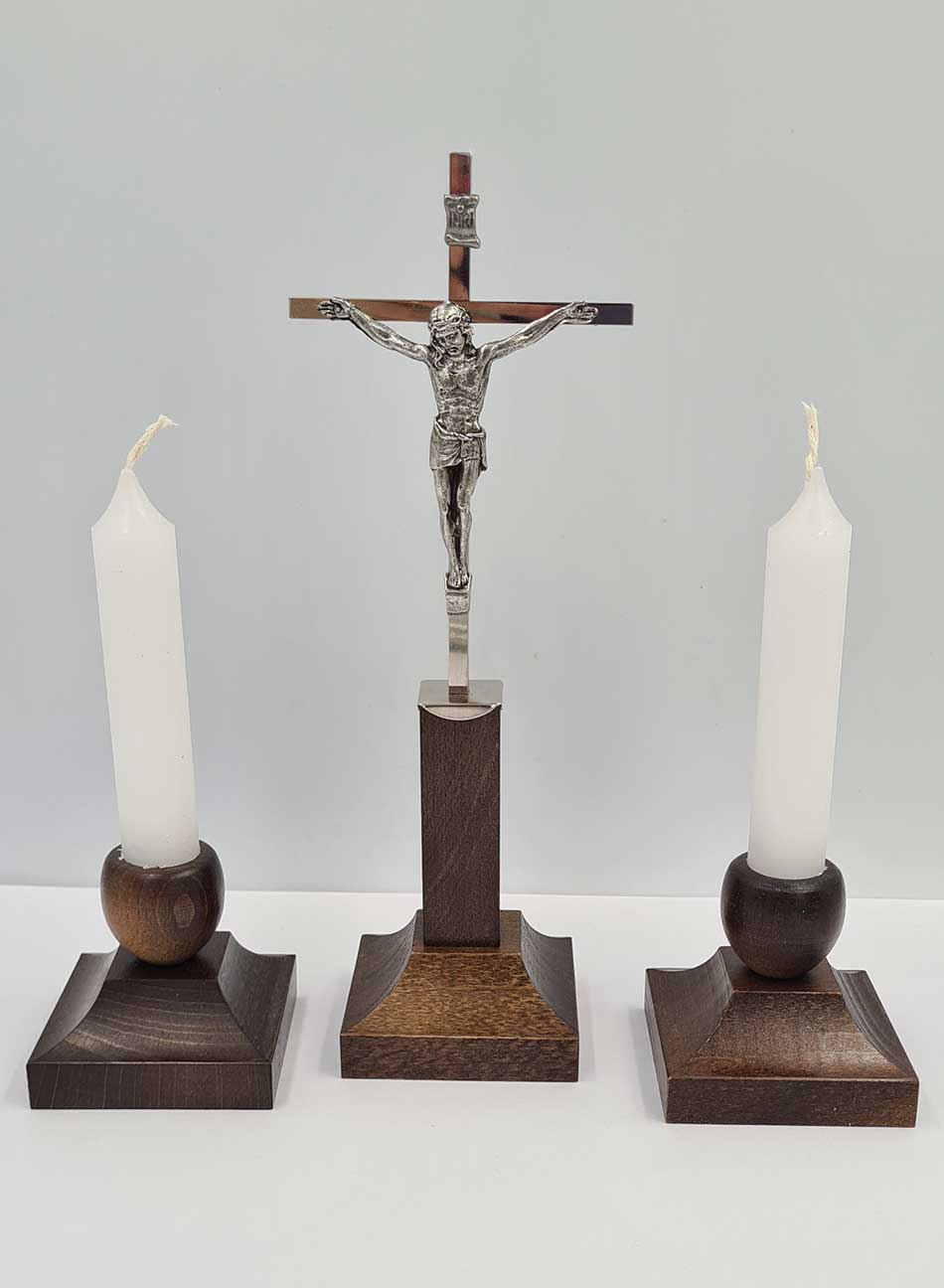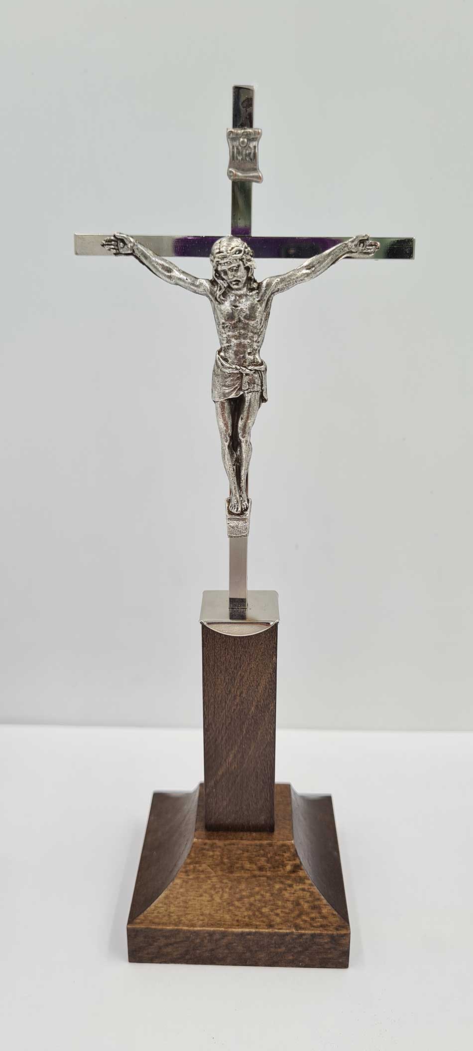 Krzyż z podstawą drewnianą i wykończeniem metalowym - wysokość: 21,5 cm