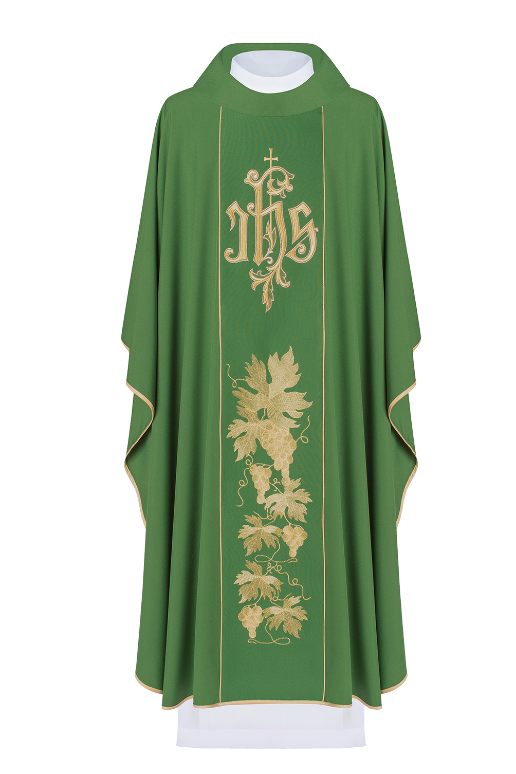 Ornat eucharystyczny w kolorze zielonym z haftem IHS