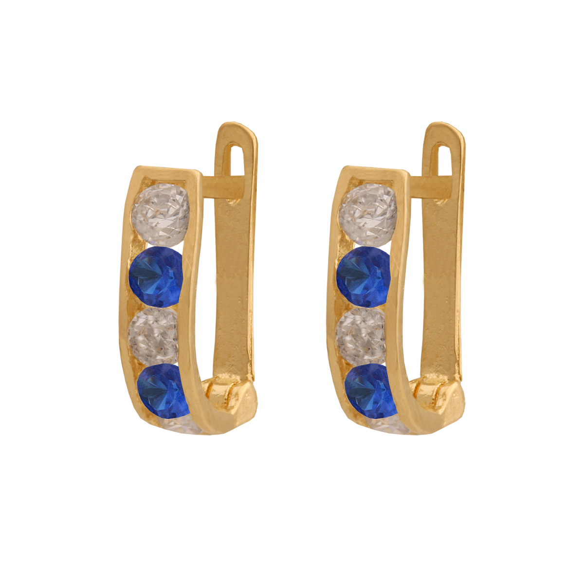 Złote kolczyki z niebieską cyrkonią