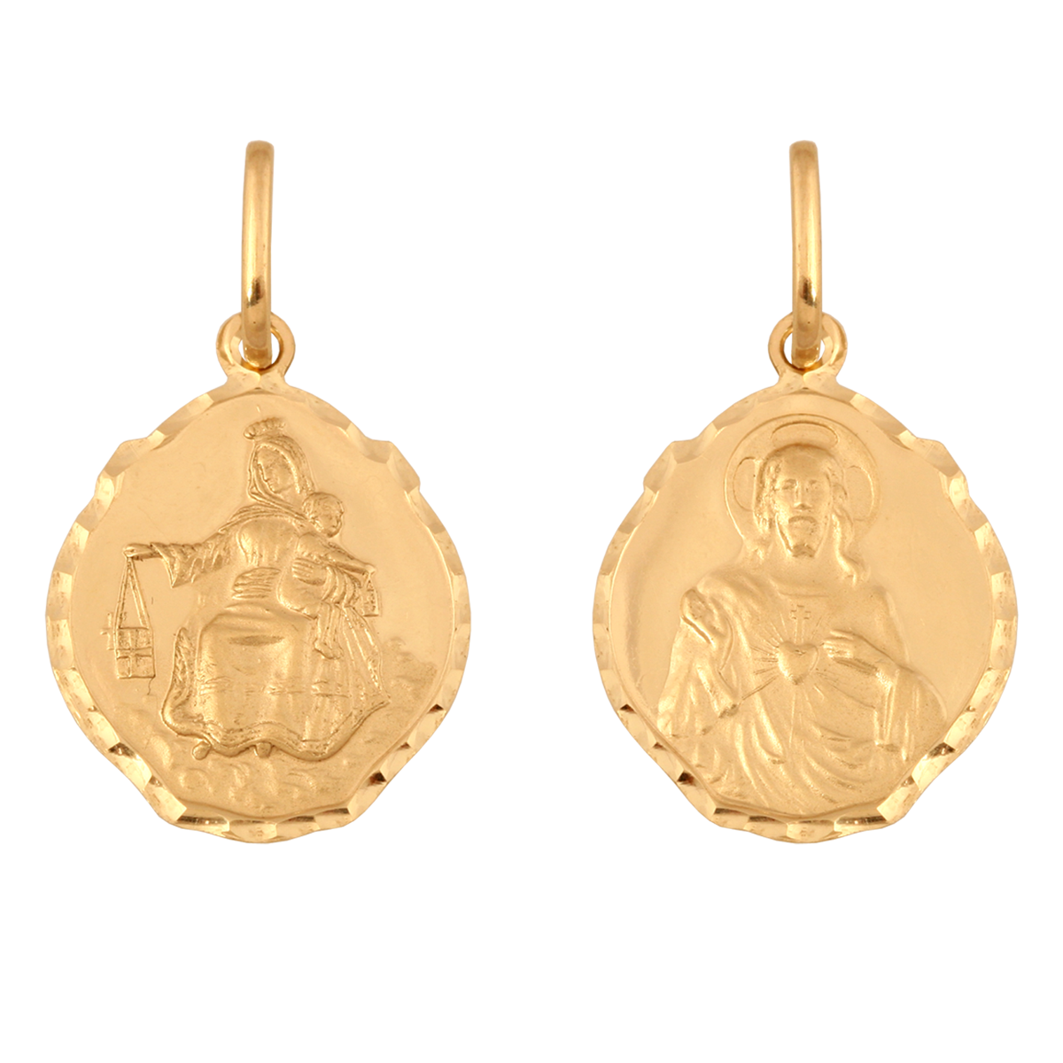 a z drugiej strony z sercem Pana Jezusem, wykonany z 14 karatowego złota próby 585.